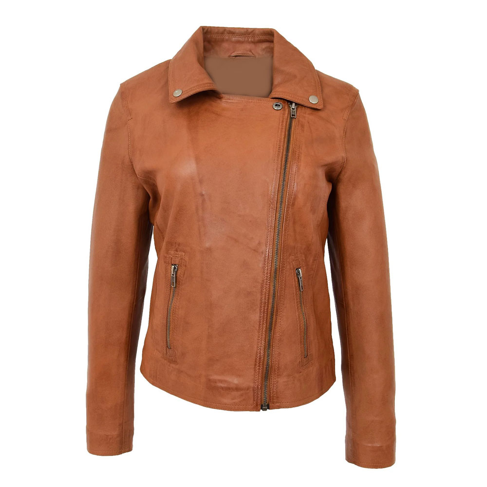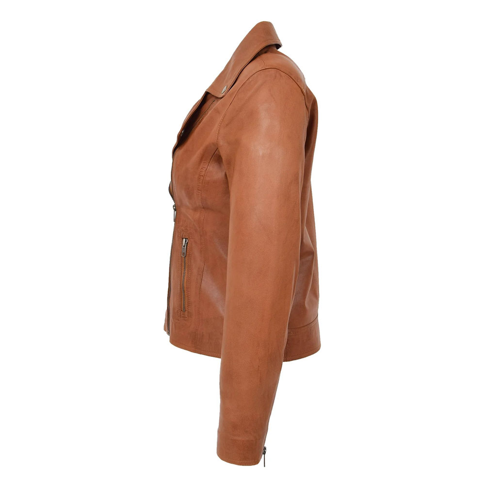 Women’s Tan Fashion Biker Leather Jacket