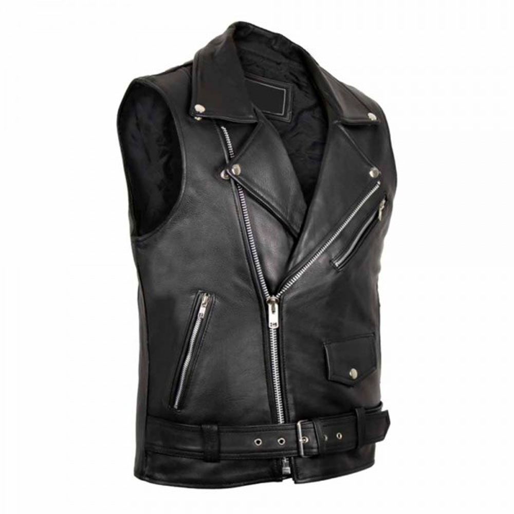 Men’s Black Asymmetrical Biker Leather Vest