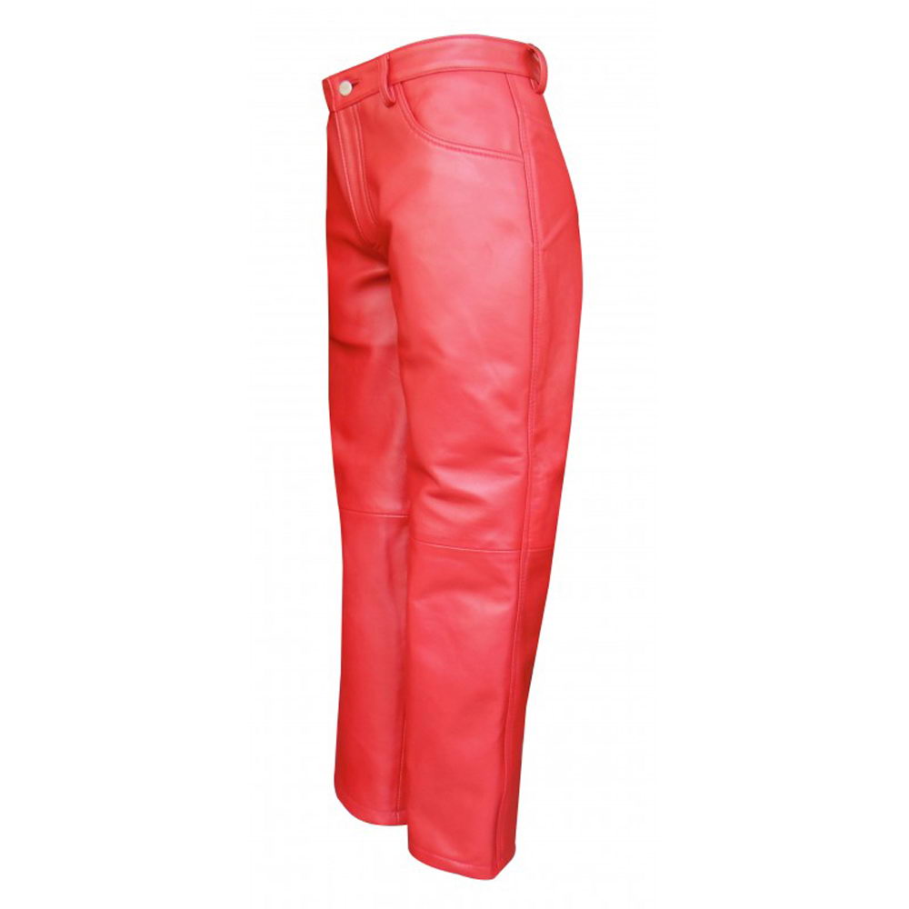 Women’s Red Straight Leg Leather Pants