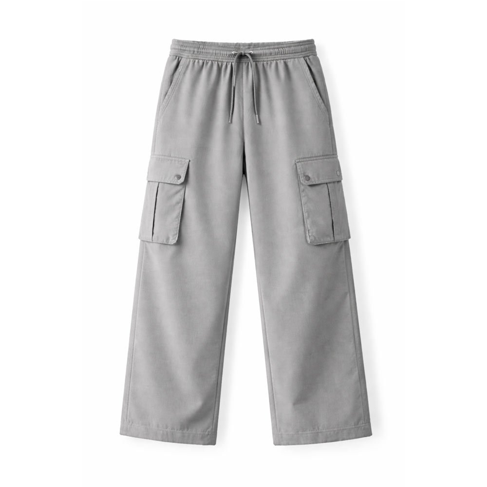 Grey Wide-Leg Cargo Pants